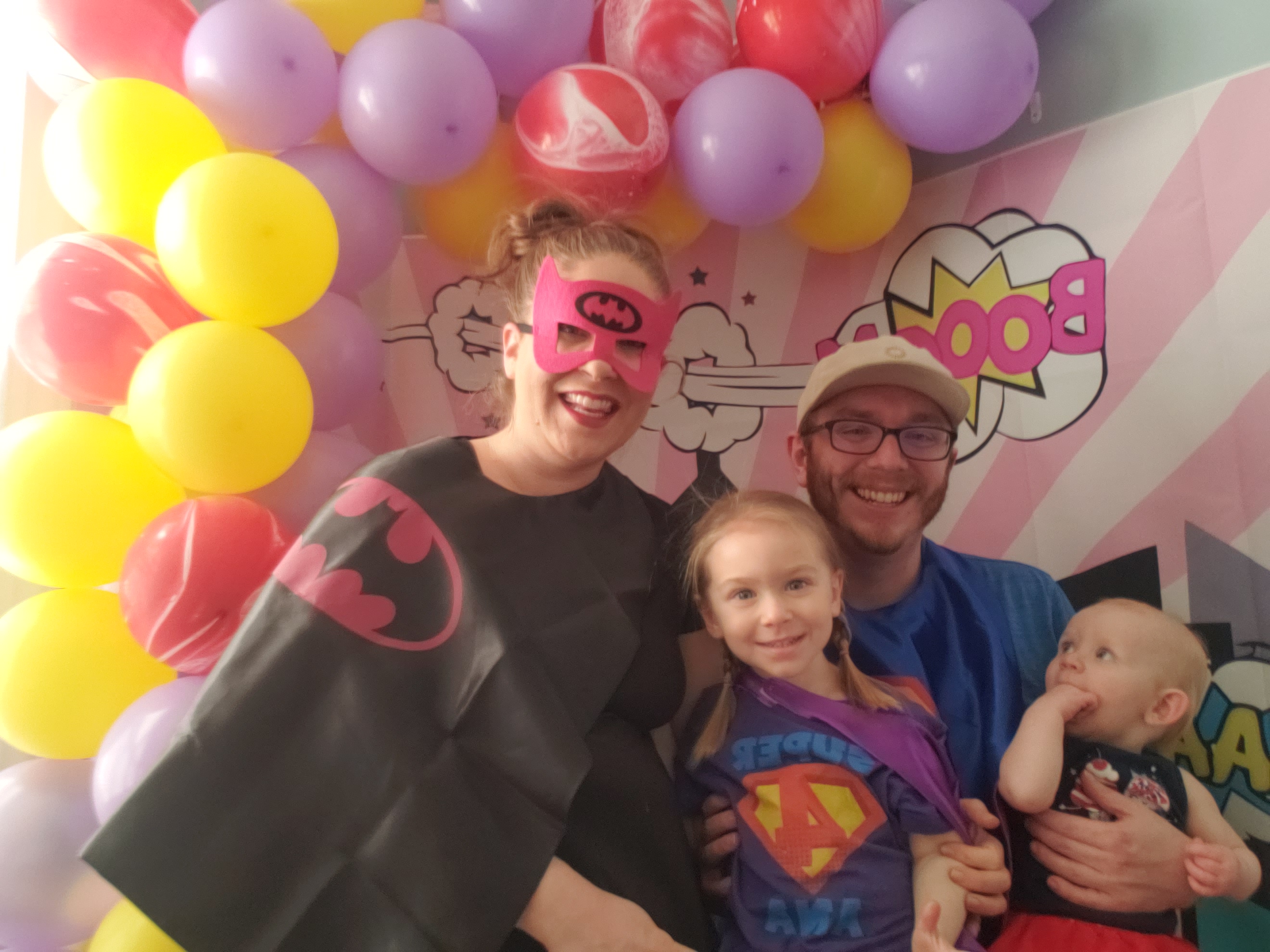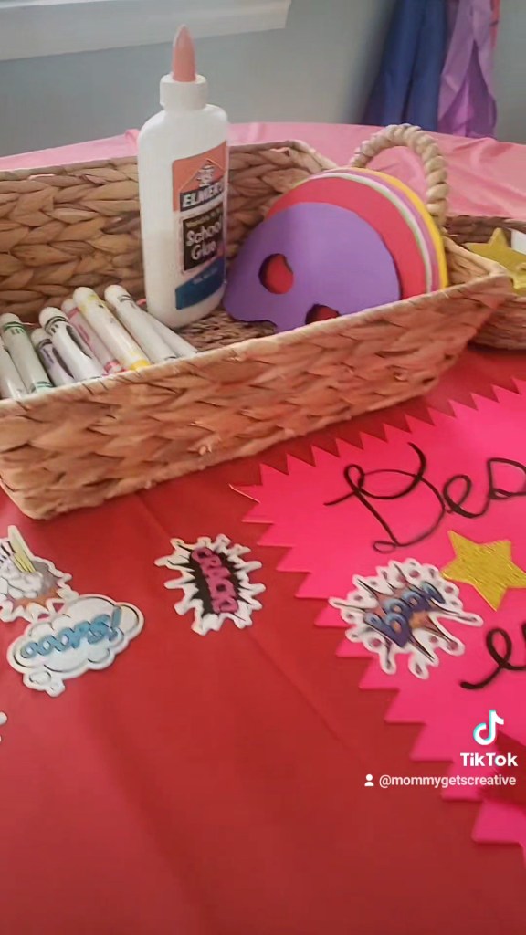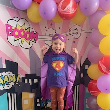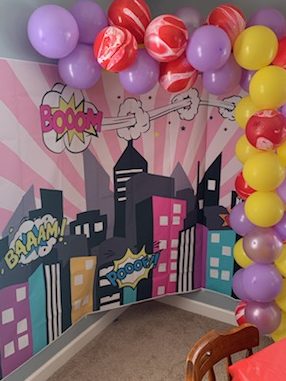 The background and her cape with the mask I found on Temu. I found an easy tutorial on how to make a simple balloon arch on TikTok. My husband did all the work on that after I showed him how to do it. I’ll make another post on how we did it.