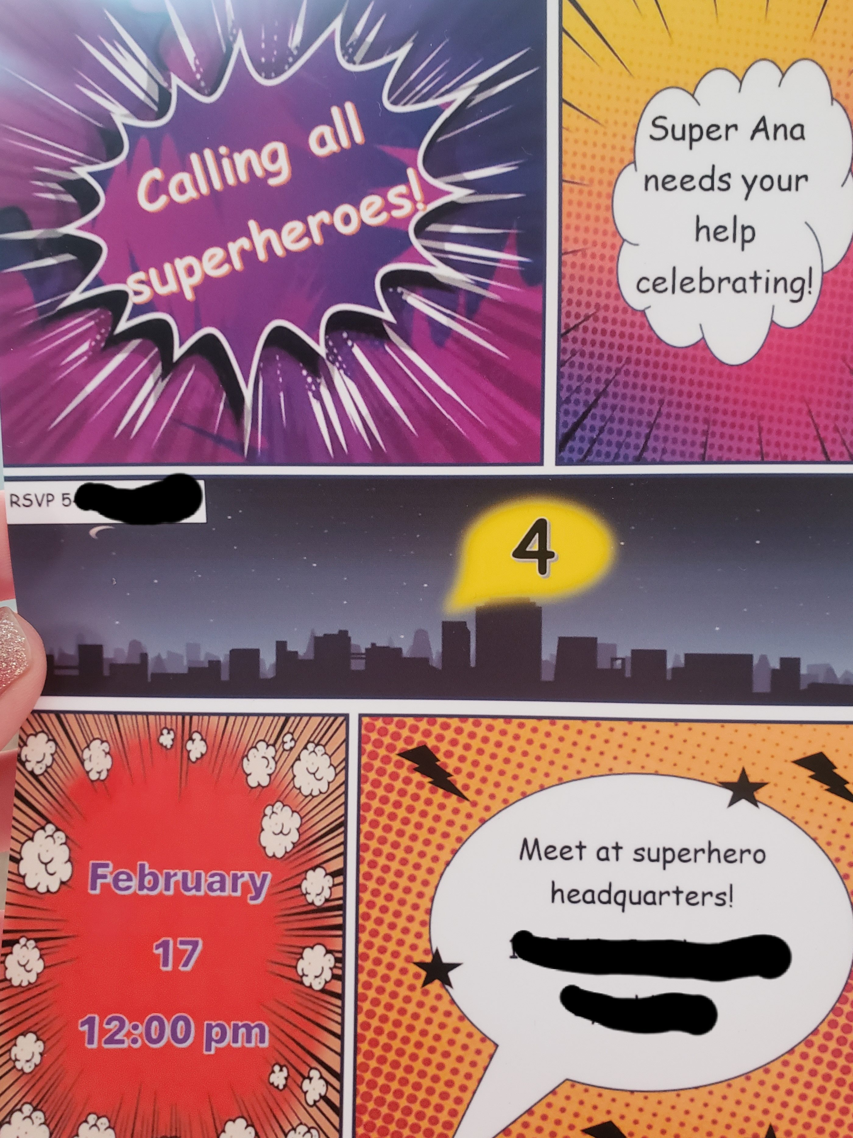 My daughter doesn’t let only “princess” define her just because she’s a girl. I asked her if she wanted a princess party or (noticing her interests) a superhero party. Without hesitation, she picked superheroes. This wasn’t going to be a DC versus Marvel ad campaign. She wanted to make her own mark in the superhero world, where she was the main character. This required some creativity. For someone who loves coming up with ideas (and recreating from some inspiration along the way), this was such a fun party to plan. Here are some of the ideas we used.