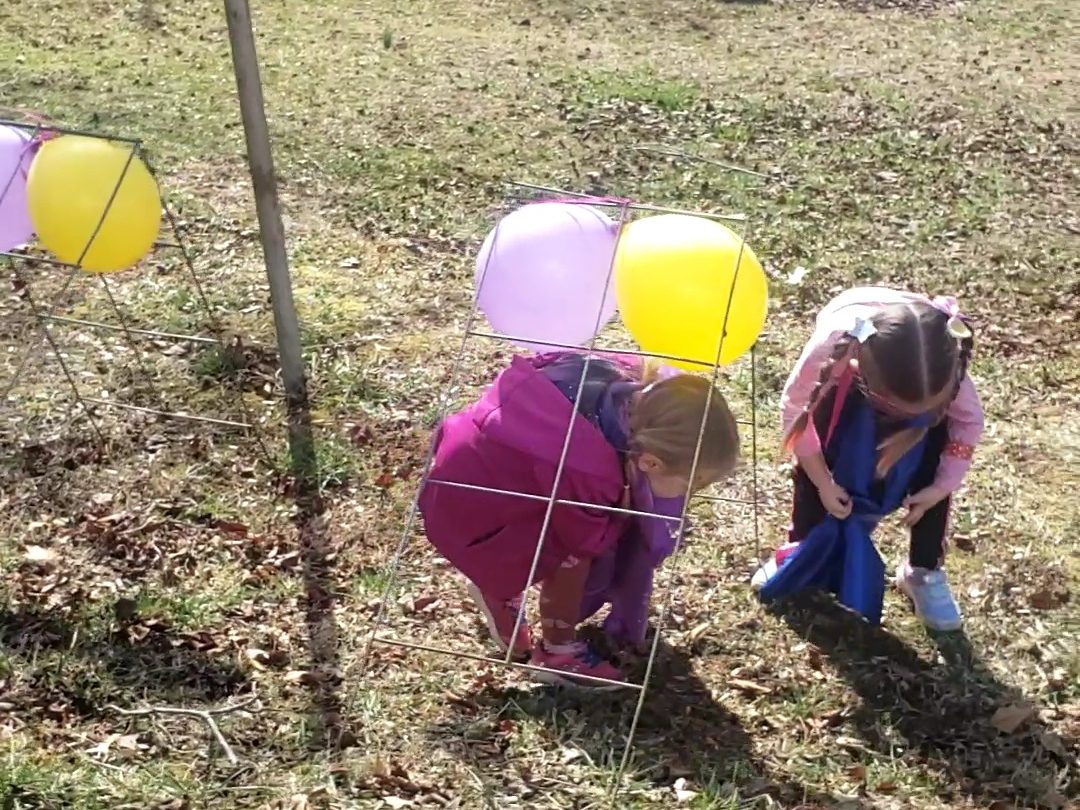 My husband created an obstacle course using items we already had around the house. We used a play tunnel (which can be bought here), a hopper ball, our slide that we attached to our hill (link here), folding trellises to crawl under, some bucket lids to hop on, and I made a punch wall to get some prizes (peek the tutorial here). The kids loved the obstacle course and could have done it all day. I only wish I added more holes to punch!