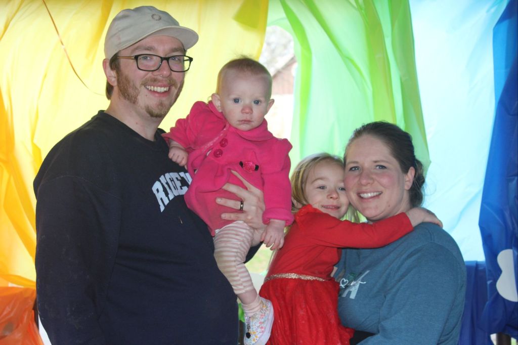 She thoroughly enjoyed eating her cake by the fist full. Daddy tried to avoid it, but he got smeared with whipped cream icing! Clean up could have used a good hose.