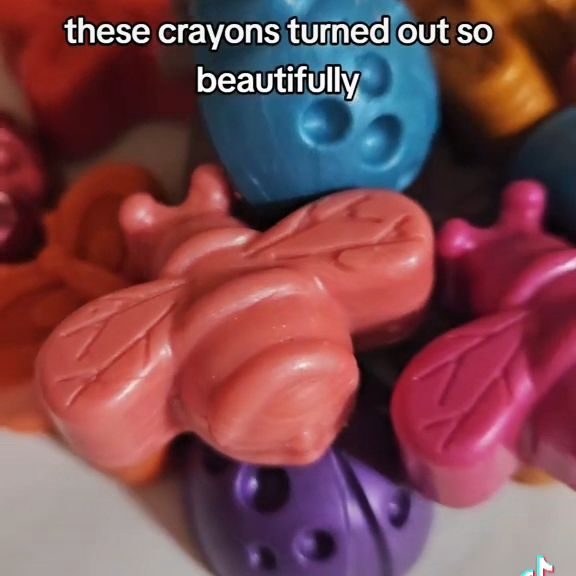 We used more beeswax to make some beeswax crayons. It wasn’t too hard, but some patience is required. I used this recipe to make them. Just melt 6 ounces of beeswax, 2 tablespoons of raw cocoa butter, 6 tablespoons of carnauba wax, and pigments of choice. There are so many options for natural dyes such as red oxide, beet root powder, turmeric, algae powder, cocoa powder, charcoal, and more! I tried to keep it simple by using these packets of mica. For natural dyes, 1 teaspoon will be enough. The mica needed more to get enough color. The wax will be melted the same way as before in the jar placed in a pot of water on the stove. Once the waxes are completely melted, distribute to small paper cups or glass jars and stir in the colors. Pour each color into a mold of choice. I found a cute bee mold to keep on theme. Once the crayons are set, they are ready for coloring!